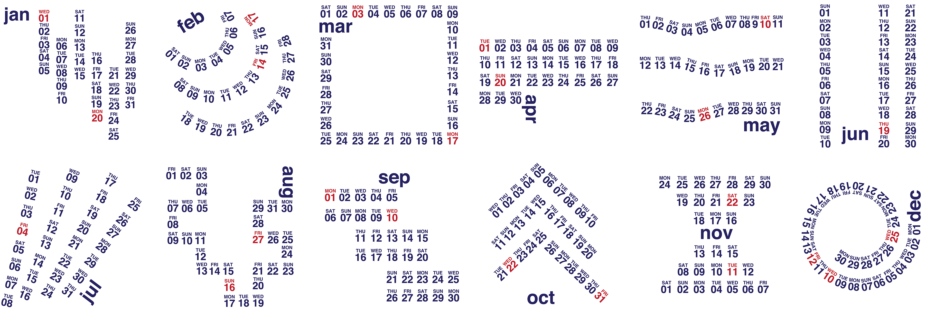 The Gutenberg is a type focused calendar for 2025. The calendar is stripped from most of its practicality, allowing the main focus to be aesthetic alone. The type represents the many different ways time can feel and is also inspired by many different mid-century modern chairs.